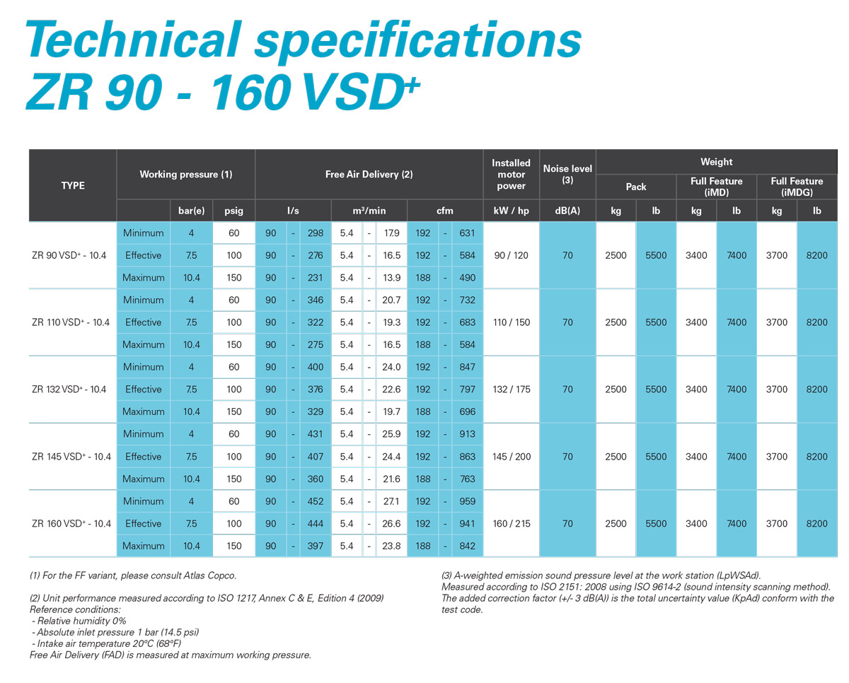 For 60 years, Atlas Copco Z compressors have set the benchmark for durability. They are built using long-standing internal engineering practices, and are designed and manufactured according to ISO 9001, ISO 14001, ISO 22000 & OHSAS 18001. The high-end ZR uses time-proven state-of-the-art screw technology, cooling and pulsation dampers and provides you with the highest reliability.